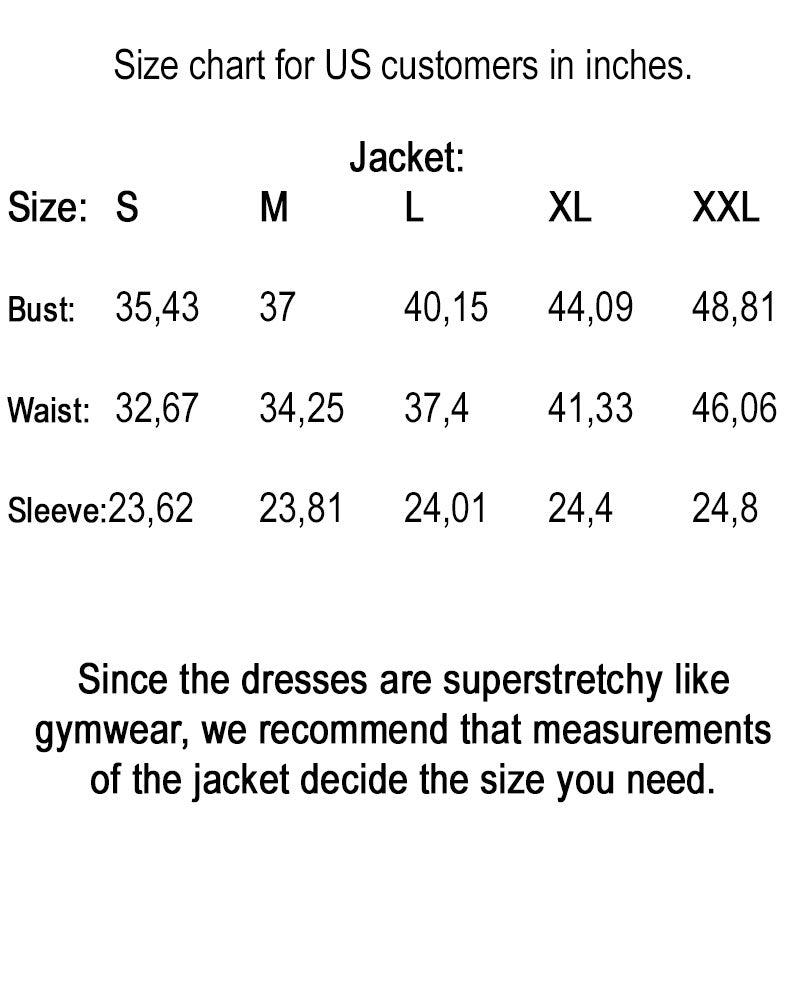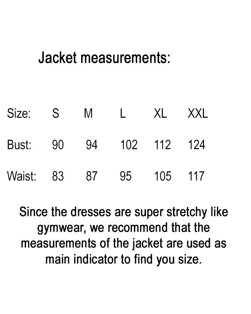 Le tableau indique les mesures des vêtements. Comme la robe est très extensible, les mesures sont flexibles. Nous vous recommandons de choisir votre taille normale.